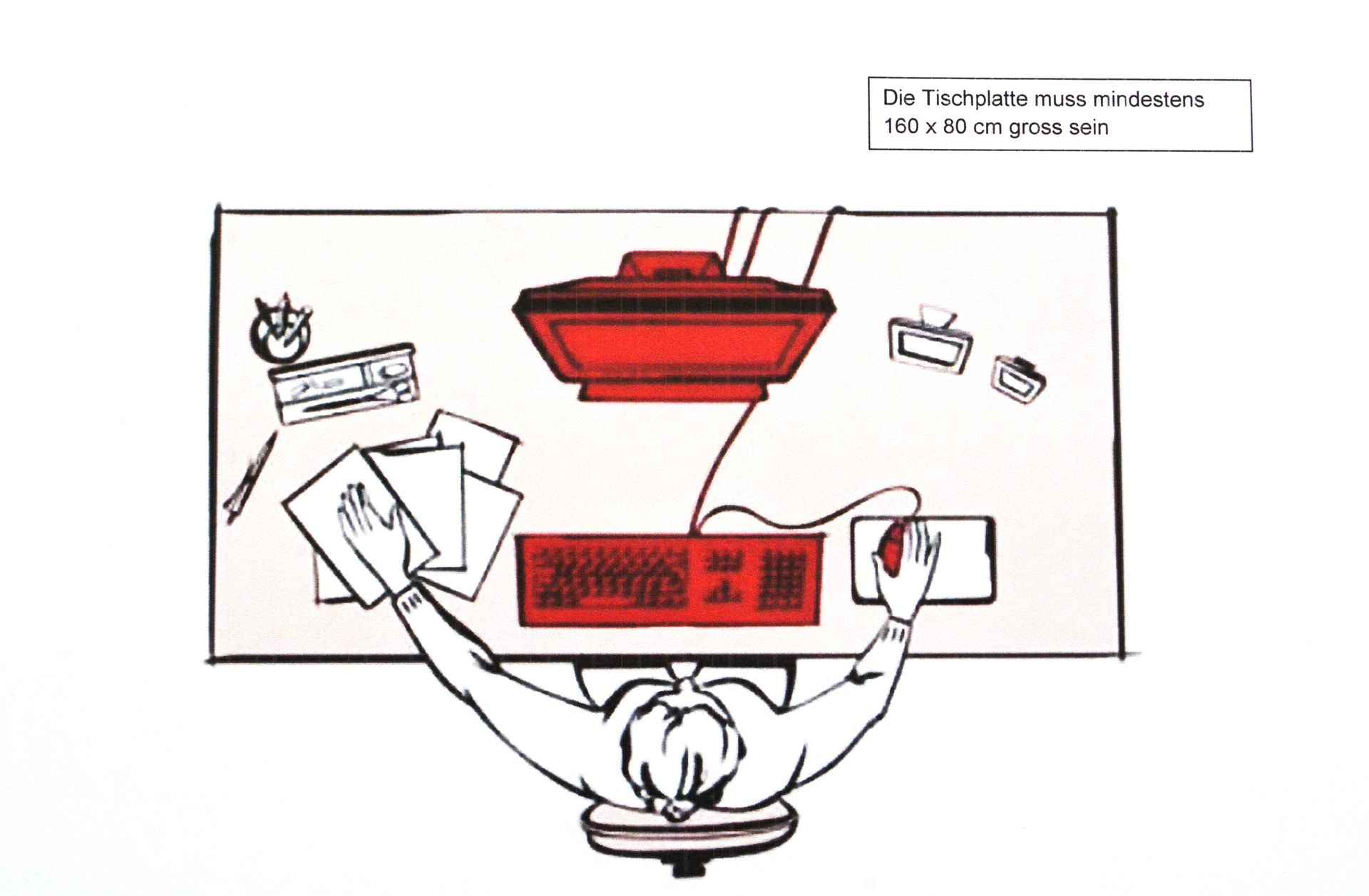 - Die Tischhöhe muss zur arbeitenden Person passen. Wir schauen uns das an.